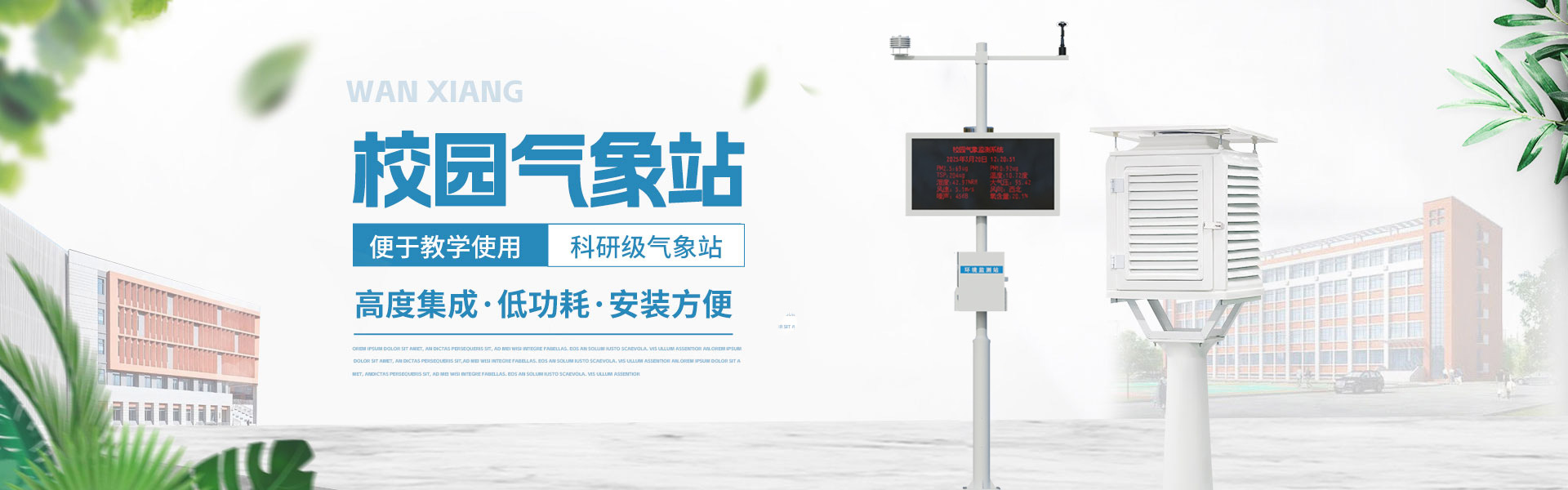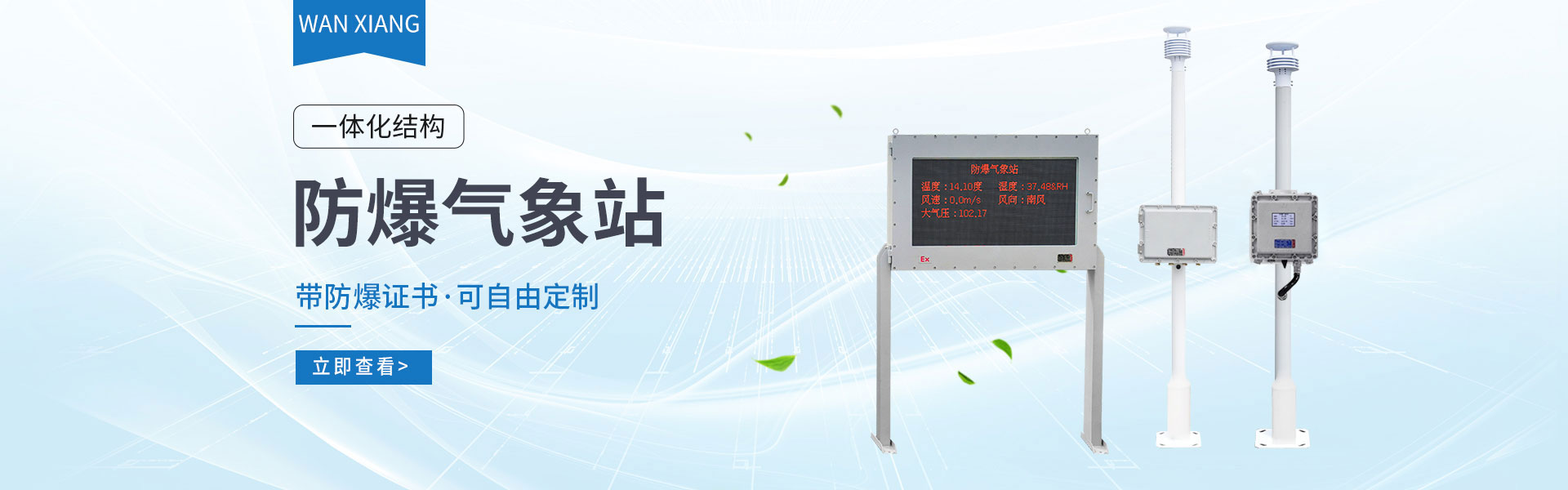 查看更多山東萬象環(huán)境科技有限公司官網(wǎng)主要產(chǎn)品有防爆氣象站,校園氣象站,農業(yè)氣象站,負氧離子監(jiān)測站,超聲波氣象站,歡迎咨詢19853697985!